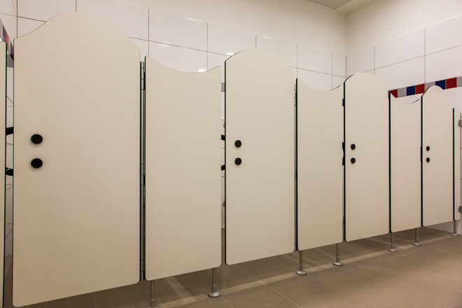 Sanitär-Trennwände - System NA 13 Kita Anschrift Kita Alte Sattelfabrik Bad Homburg Alte Sattelfabrik 8 61350 Bad Homburg Bauvorhaben Renovierung Zeitraum Herbst 2014 Leistungen Fertigung und Montage von Kita Sanitär-Trennwänden Anzahl 12 x Kabinen Besonderheit Frontseite in Wellenform